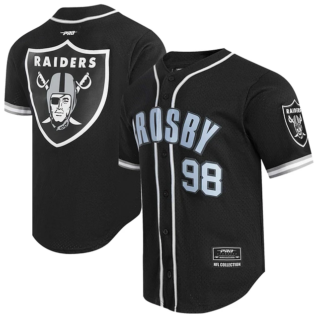 Men's Pro Standard Maxx Crosby Black Las Vegas Raiders Mesh Button-Up Baseball Jersey