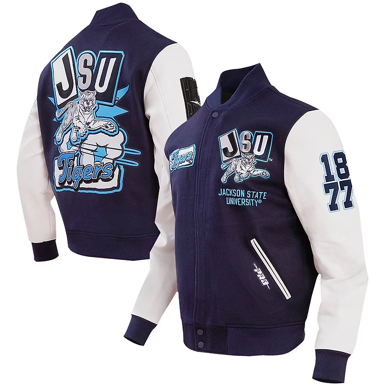 Men's Pro Standard Navy Jackson State Tigers Homecoming Varsity Full-Snap Jacket