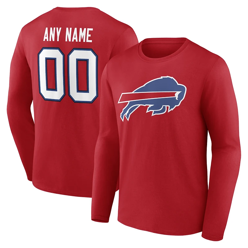 We want fans to celebrate their fandom by customizing and personalizing certain products. For these customizable products, including jerseys, we invite customers to tell us how they would like their preferred name or other text to appear by typing that text into the field indicated. However, just because a customer is able to type proposed customization text into the field and is able to complete the order through the website, not all proposed customization text will be accepted. Please note, Fanatics may reject and cancel any customization order for any reason, including for messages that are deemed offensive or inappropriate. This Buffalo Bills Team Authentic Personalized Name & Number Long Sleeve T-Shirt offers a comfortable and classic fit as well as spectacular graphics on the chest and back.