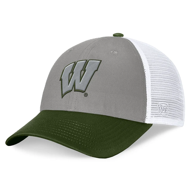 Men's Top of the World Gray/Green Wisconsin Badgers OHT Military Appreciation Badge Trucker Adjustable Hat