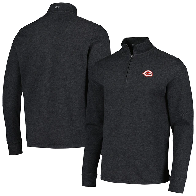 Men's Vineyard Vines Black Cincinnati Reds Saltwater Quarter-Zip Jacket