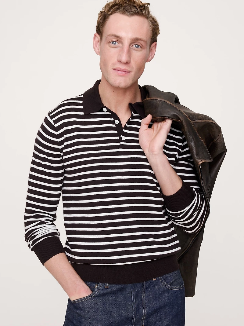 Merino Stripe Long-Sleeve Sweater Polo in Ottawa, ON