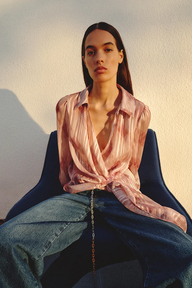METALLIC THREAD STRIPED POPLIN SHIRT