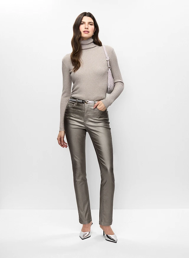 Ribbed Turtleneck Sweater - Metallic Stripe