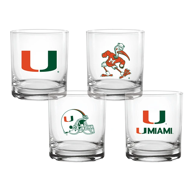 Miami Hurricanes 4-Pack Collector's 14oz. Rocks Glass Set