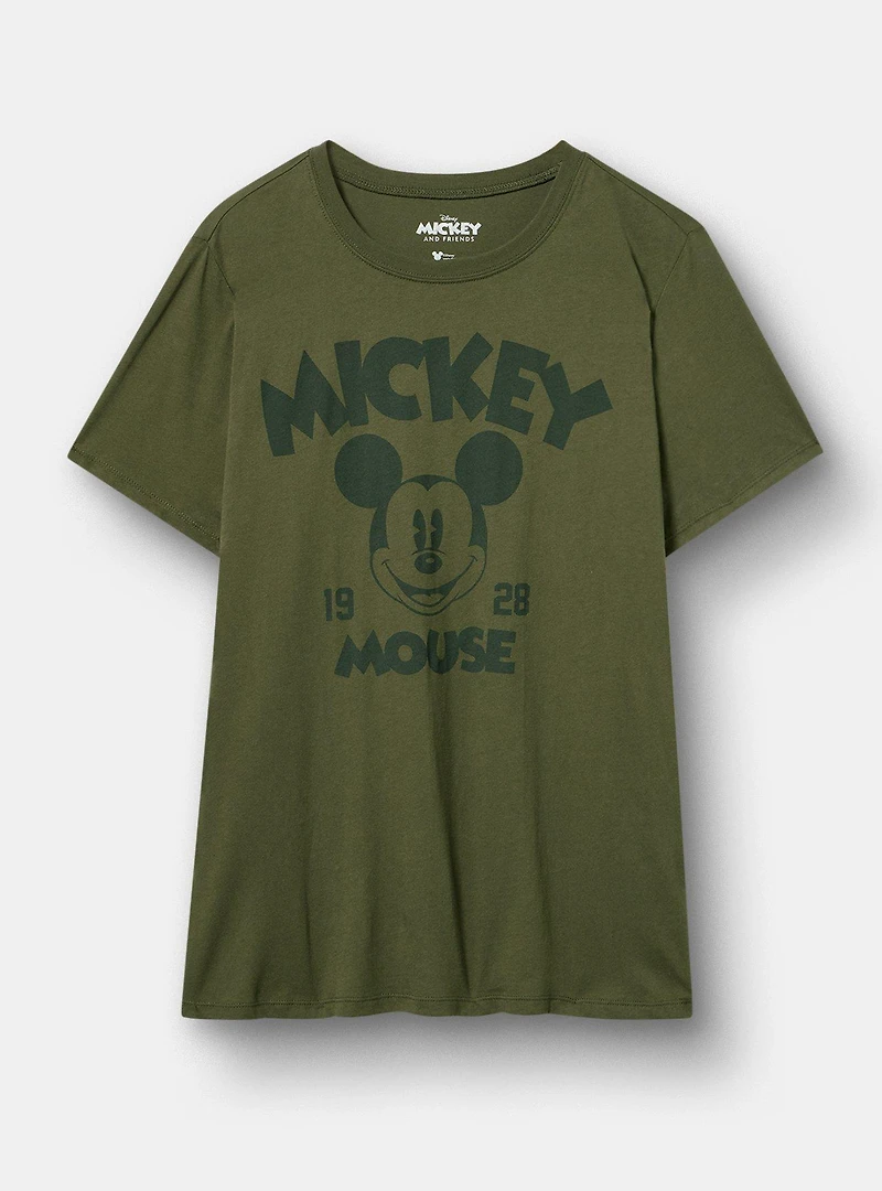 FIT Classic fit: Fitted up top, eased through the body. Measures 30’’ from shoulder (size 2). MATERIALS + CARE Heritage Jersey knit fabric: Your essential, textured cotton fabric. Stretch level: Maximum. 100% cotton. Machine wash cold. Tumble dry low. Imported. DETAILS Crew neckline. Short sleeves. Mickey Mouse graphic.