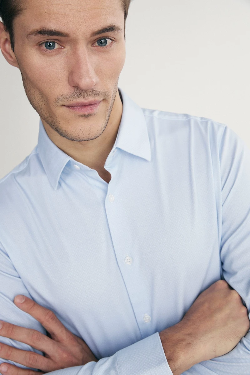 The extra-slim fit shirt with a micro pattern stands out for its refined craftsmanship, offering everyday comfort and style. Its high-quality fabric ensures easy care and lasting durability over time.