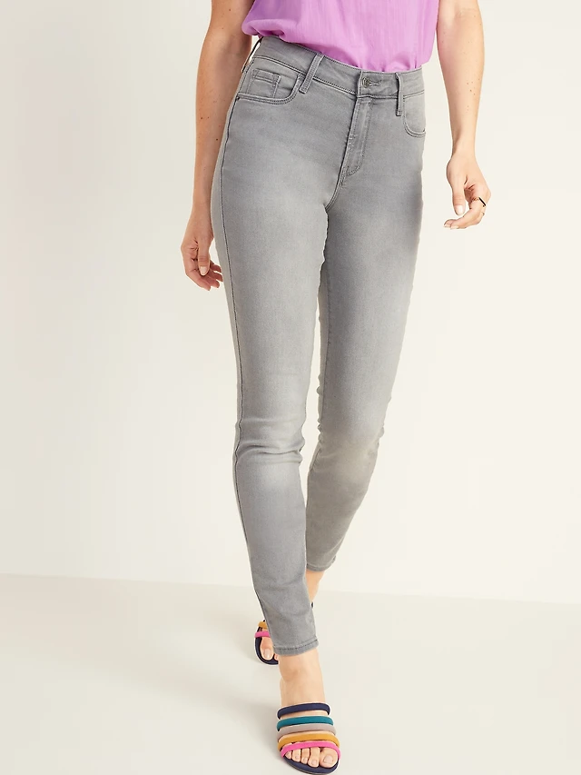 Mid-Rise Gray-Wash Rockstar Super Skinny Jeans for Women