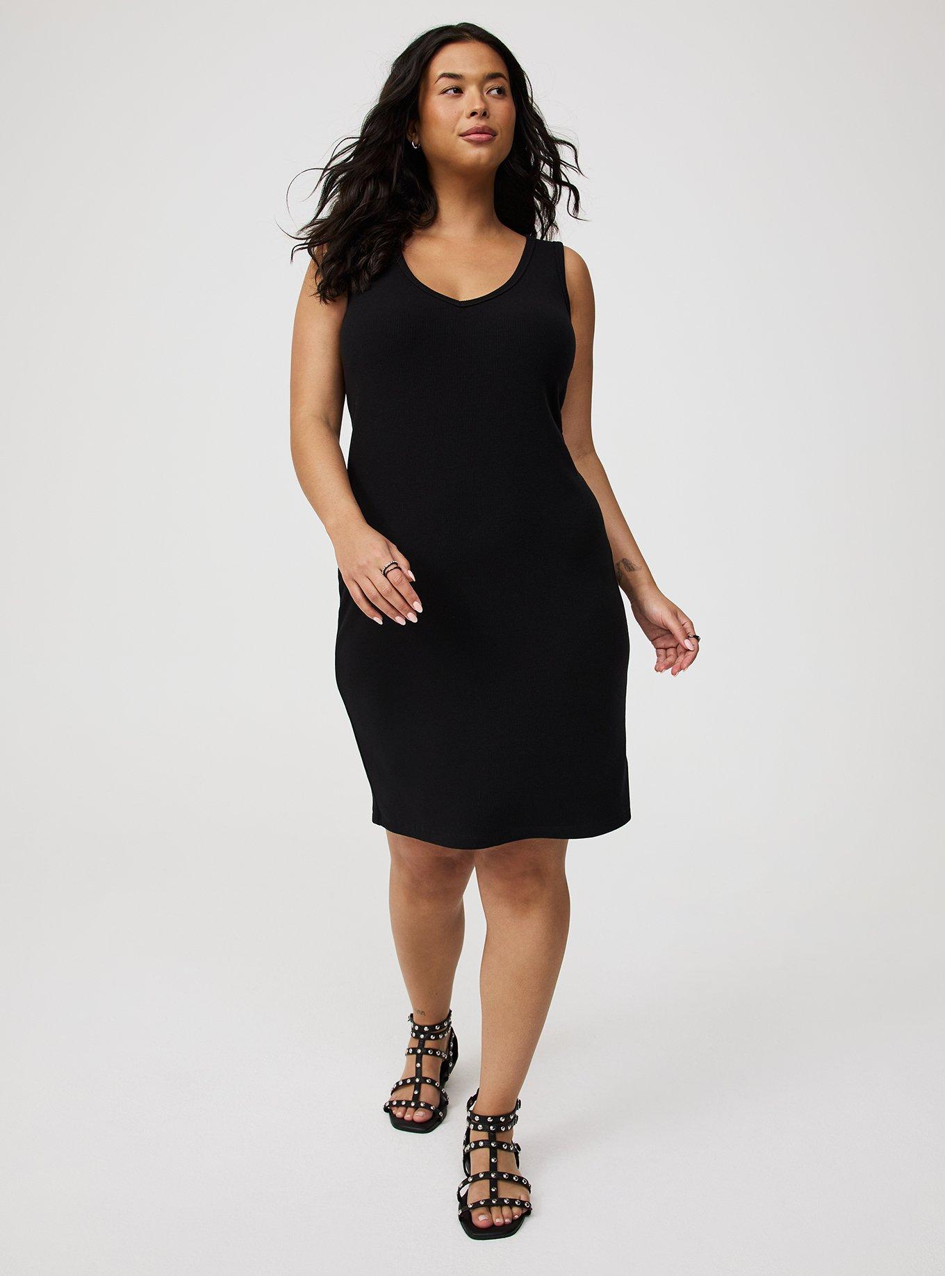 FIT Mini length. Measures 40'' from shoulder (size 2). MATERIALS + CARE Rib-knit fabric. 62% polyester, 33% rayon, 5% spandex. Machine wash cold. Dry low. Imported. DETAILS V-neckline. Sleeveless. Ribbed texture.
