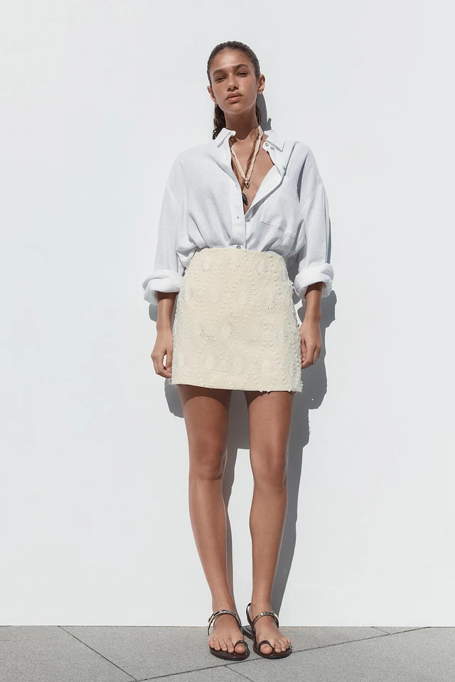 MINI SKIRT WITH FRAYED EMBROIDERY
