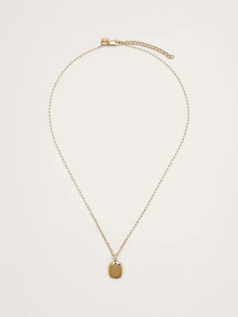 A classic pendant necklace on a link chain with a minimalist pendant, finished in 14k-gold or 999-silver plated brass. 14k-gold or 999-silver plated brass. Lobster clasp.
