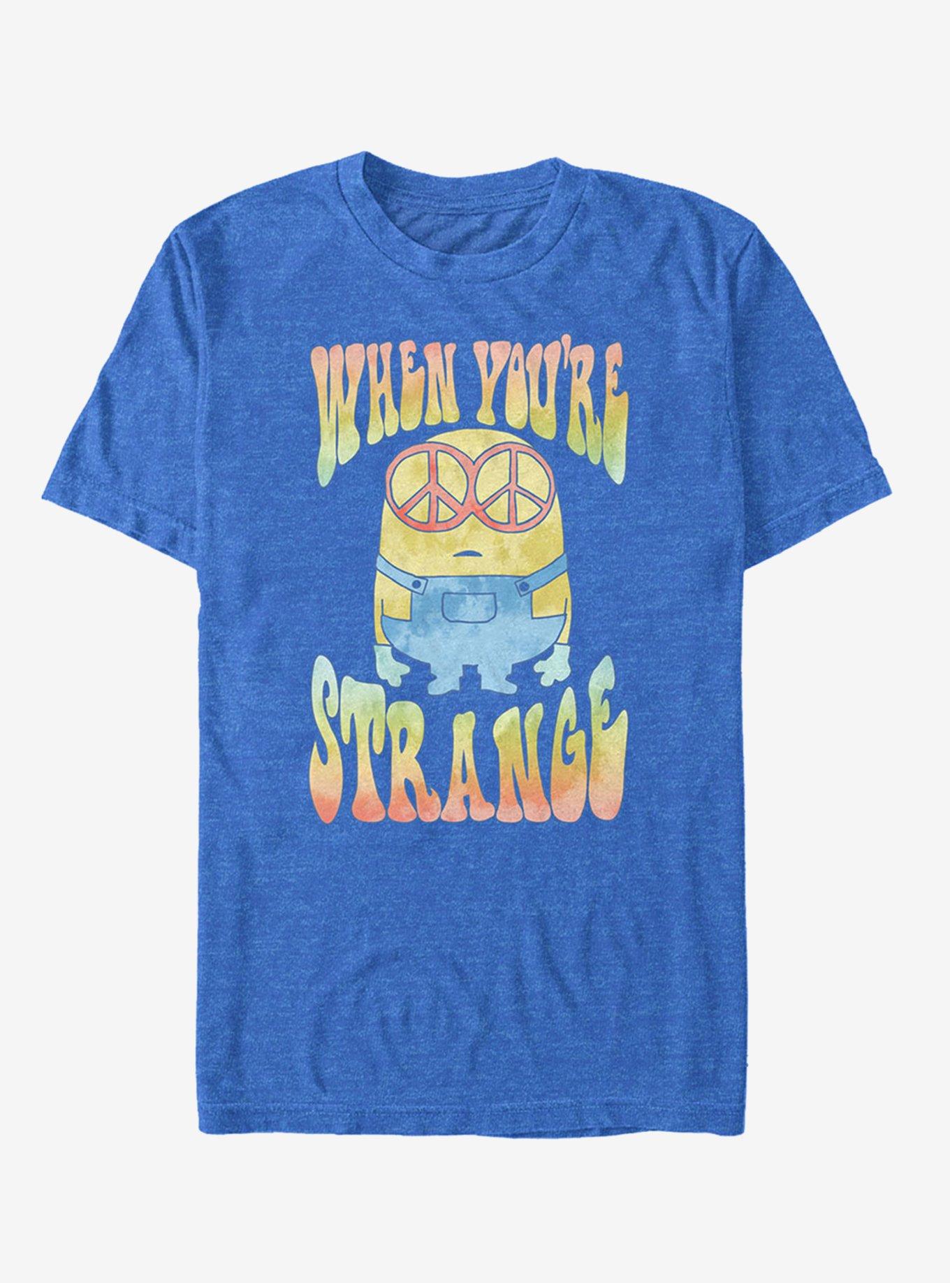 If you're feeling groovy then get yourself the Despicable Me Minion Tie-Dye Strange T-Shirt! Your favorite little yellow sidekick is portrayed in a tie-dye style, complete with peace sign glasses, on this hilarious Minions tee.