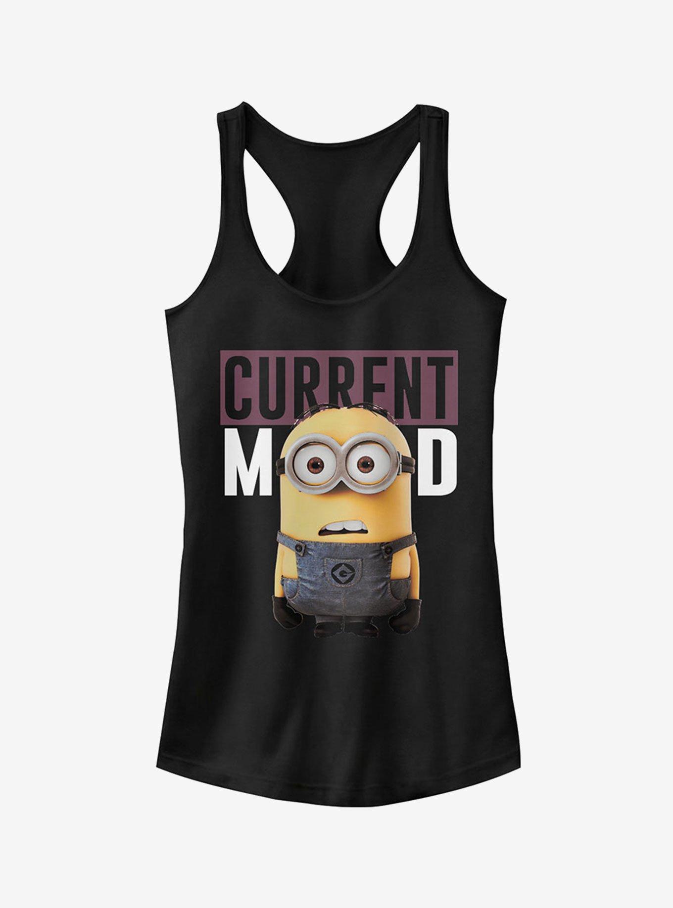 You may not know what they are saying, but you always know how they feel with the Despicable Me Minions Current Mood Women's Racerback Tank Top. Dave the Minion is portrayed with "Current Mood" on this funny relaxed-fit Despicable Me tank top.