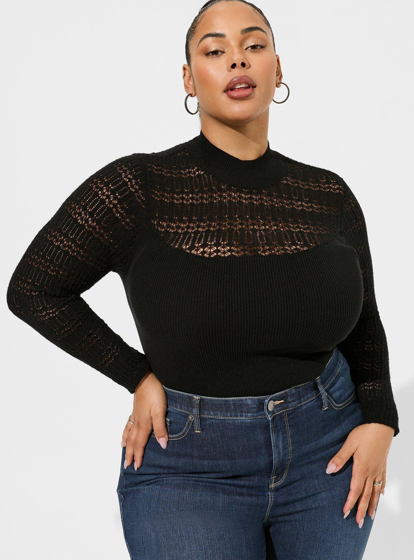 Mock Neck Pointelle Pullover Sweater