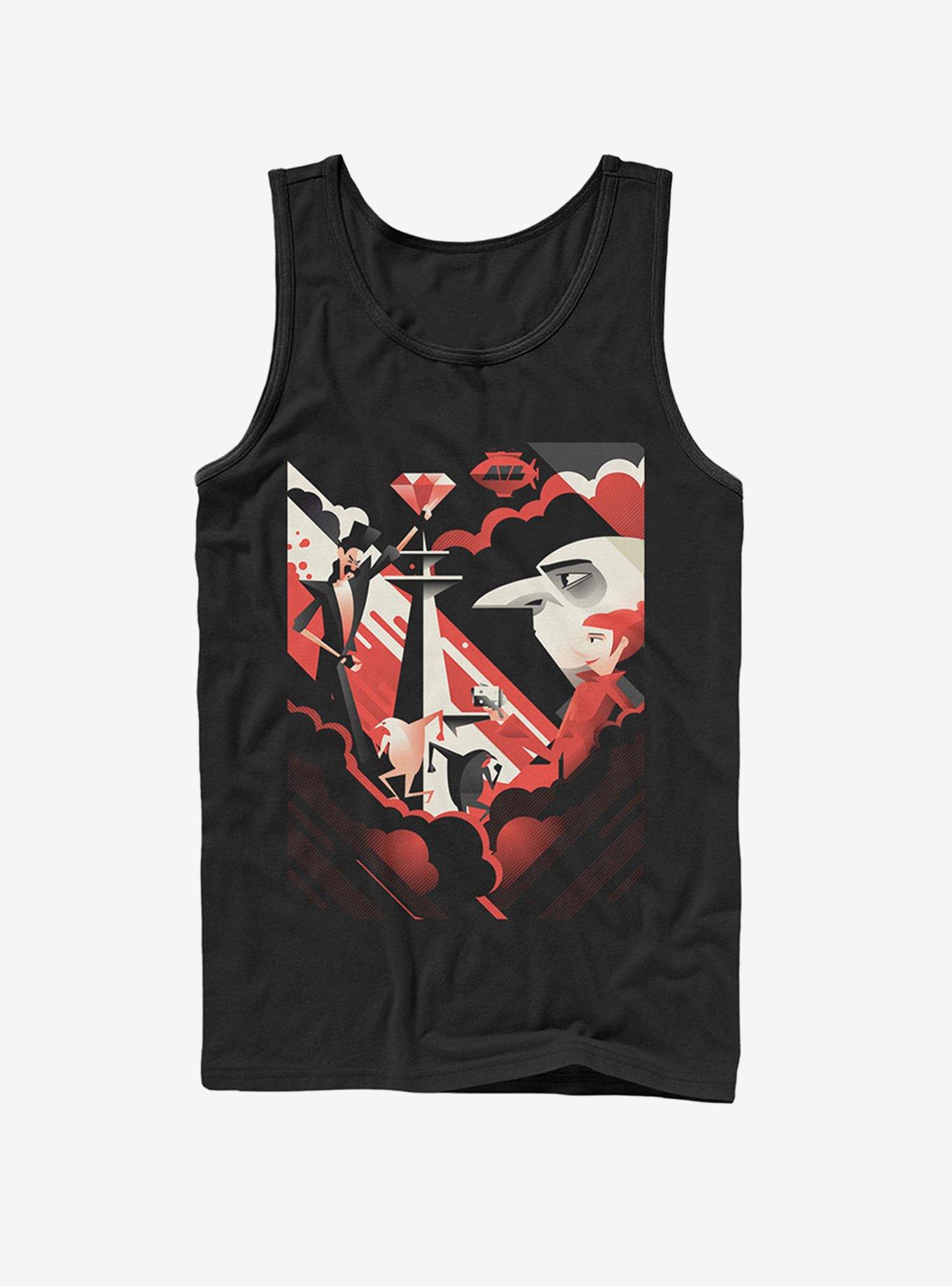 Help Gru save the world's largest diamond and defeat Balthazar Bratt with the help of the Despicable Me 3 Modern Jewel Heist Men's Tank Top. A cool modern graphic shows off Bratt, Gru, and Lucy across this unique Despicable Me muscle tee.