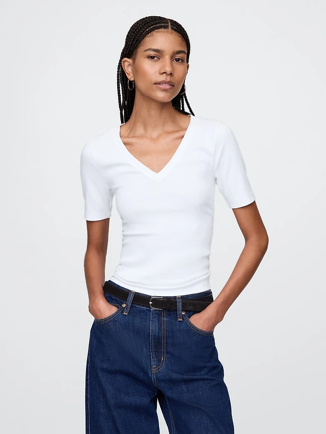 Ribbed V-Neck T-Shirt