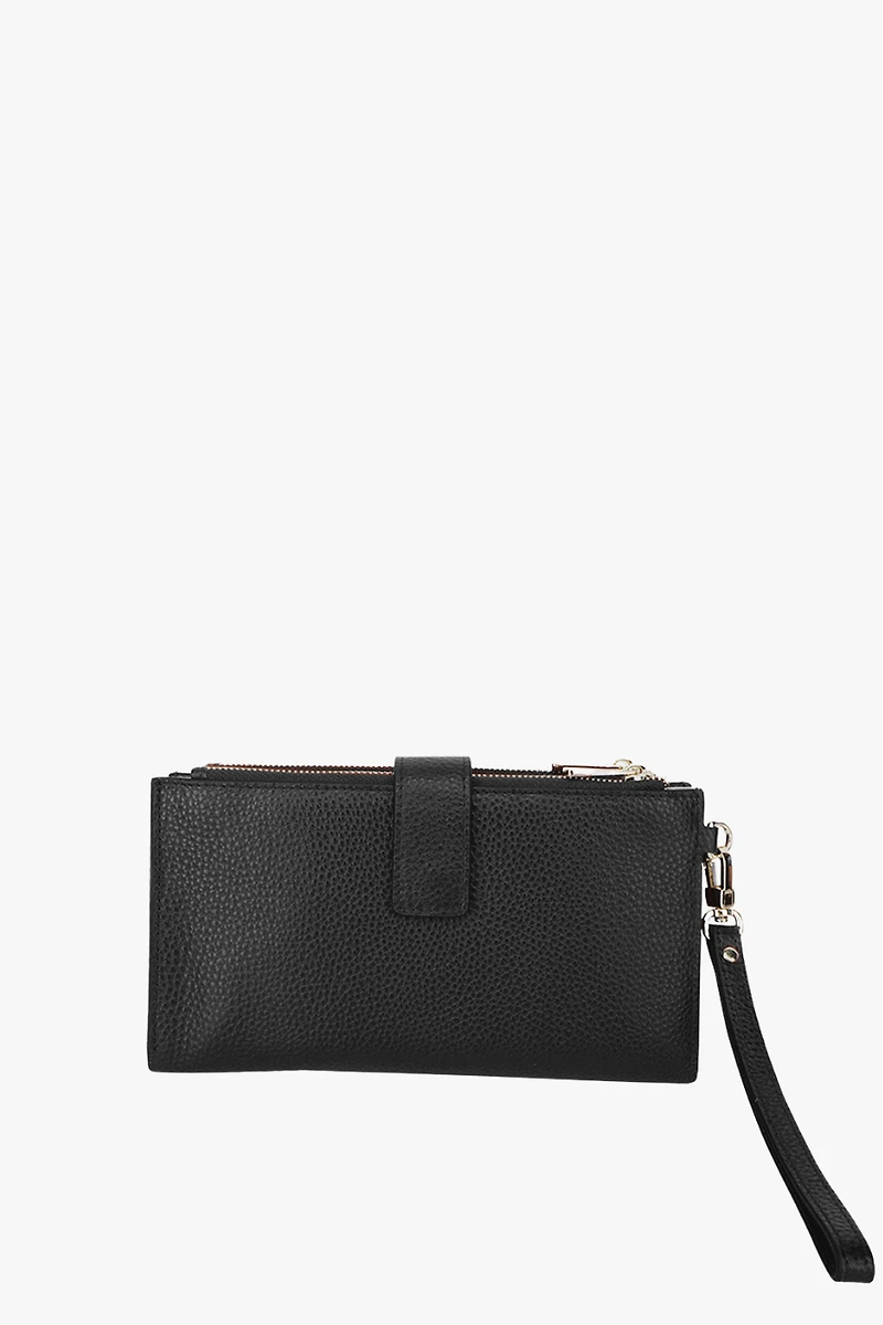 Our NEVINE carryall large phone wallet is an ideal companion for your everyday errands or trips away. Beautifully crafted from textured cow leather, this phone wallet features a snap tab closure, 2 zipper compartments, secure pocket for your smartphone, 7 card slots and 4 slip pockets. Includes a detachable wrist strap for added versatility as a wristlet.