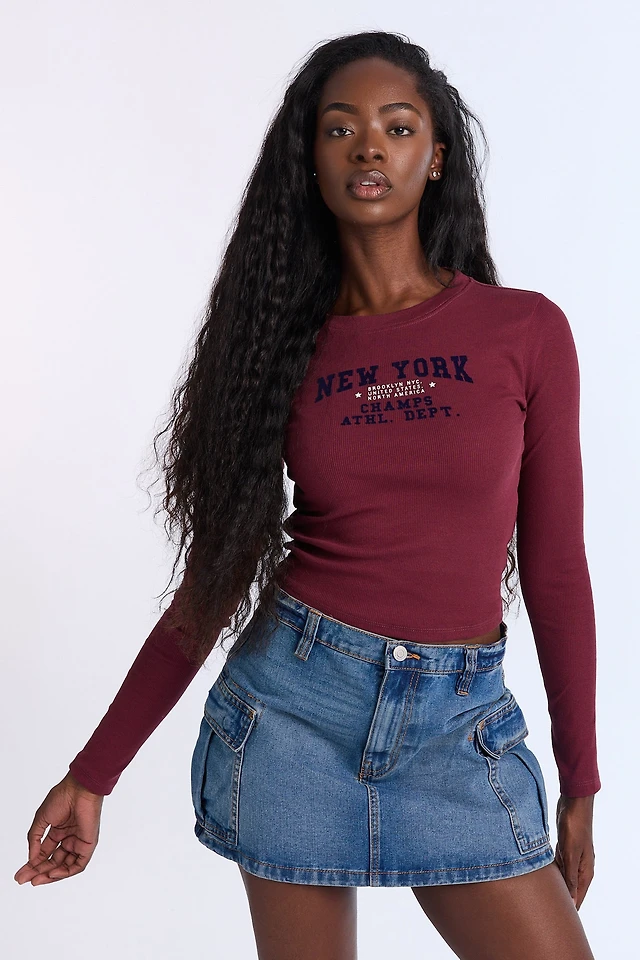 Espress Tini Embroidered Graphic Long Sleeve Baby Tee
