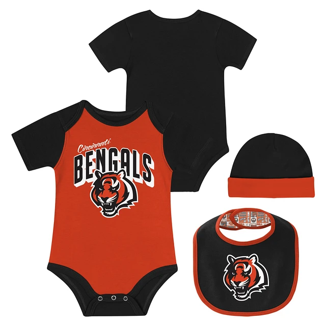 Newborn & Infant Cincinnati Bengals Dynamic Duo Bodysuit, Bib Knit Hat Set