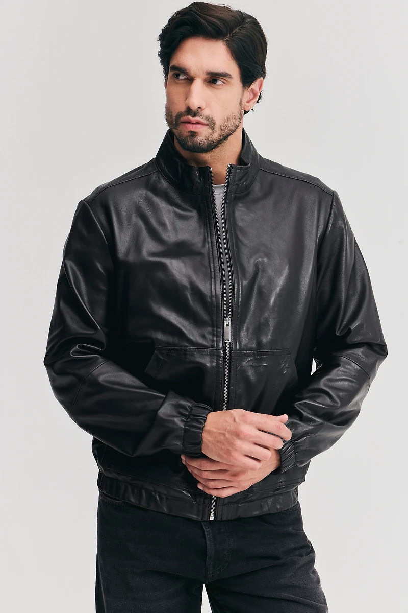 The jacket is the essential for the spring season, combining sporty and casual for an effortless flare. This sleek jacket is crafted in our premium supple lamb leather. Featuring a zip front closure, a sporty mock neck collar, front pockets, an elasticized hem, and full lining. OLLIE is perfect for everyday wear, catering to diverse lifestyles and fulfilling all your essential needs.