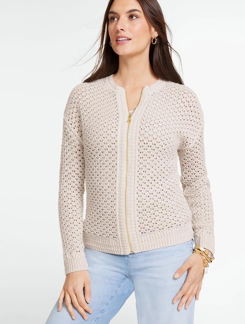 Open Stitch Full-Zip Cardigan