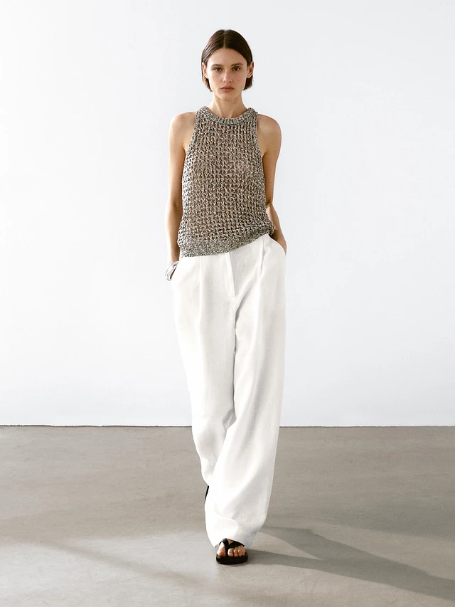 LINEN AND COTTON BLEND STRAPPY TOP