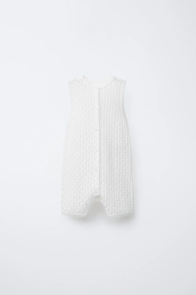 LONG KNIT OVERALLS WITH CROSS-STITCH DETAILS