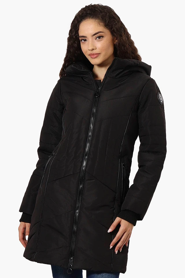 Canada Weather Gear Long Double Zip Chevron Quilted Parka Jacket
