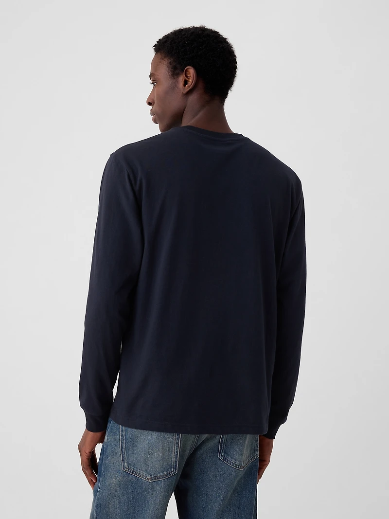 Soft cotton long sleeve t-shirt. Crewneck. Certain styles have allover prints. Made with 100% organically grown cotton, which is grown without the use of synthetic pesticides and fertilizers. This product was made in a factory that invests in gender equality and women’s empowerment. Through RISE (Reimagining Industry to Support Equality) and Gap Inc. ’s program P. A. C. E. (Personal Advancement & Career Enhancement), we support people who make our clothes to build the skills, knowledge, confidence, and resilience needed to advance in work and life. .Learn more.here. Organic Cotton 100%