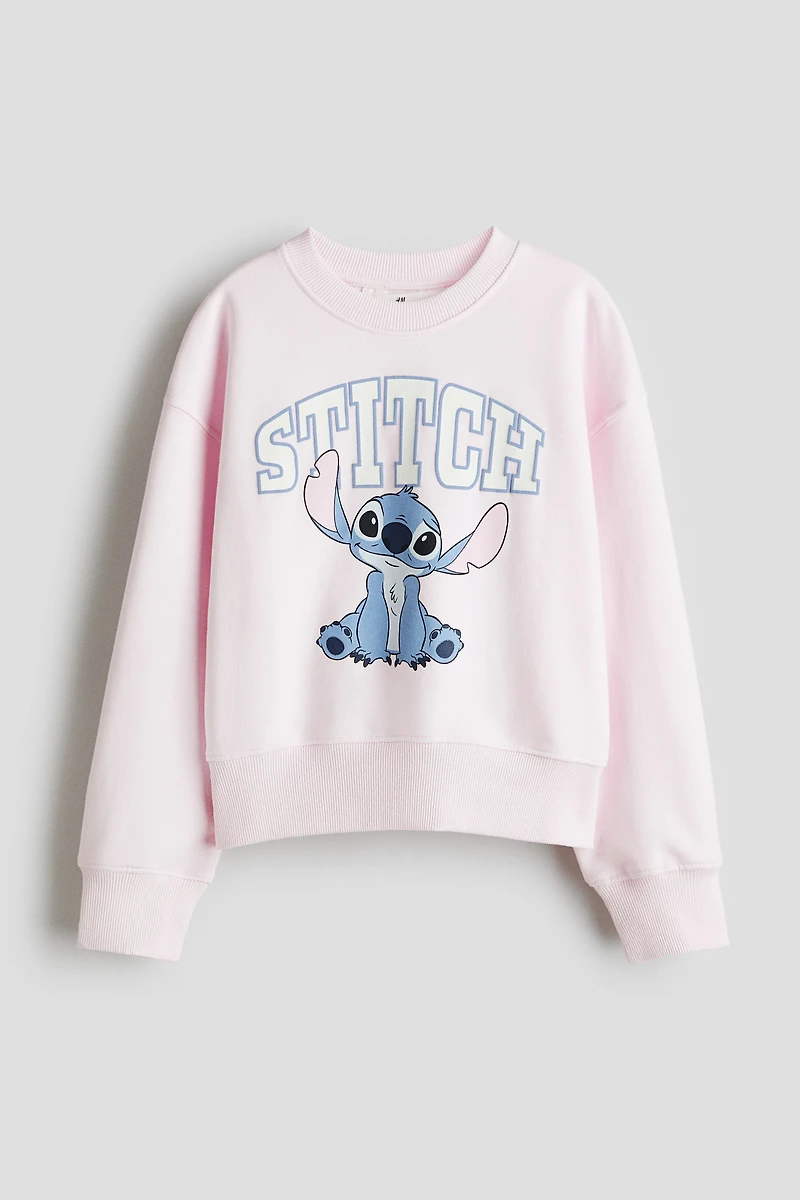 Oversized sweatshirt in lightweight fabric with a printed design and soft, brushed inside. Round neck, dropped shoulders, and long sleeves. Ribbing at neck, cuffs, and hem.
