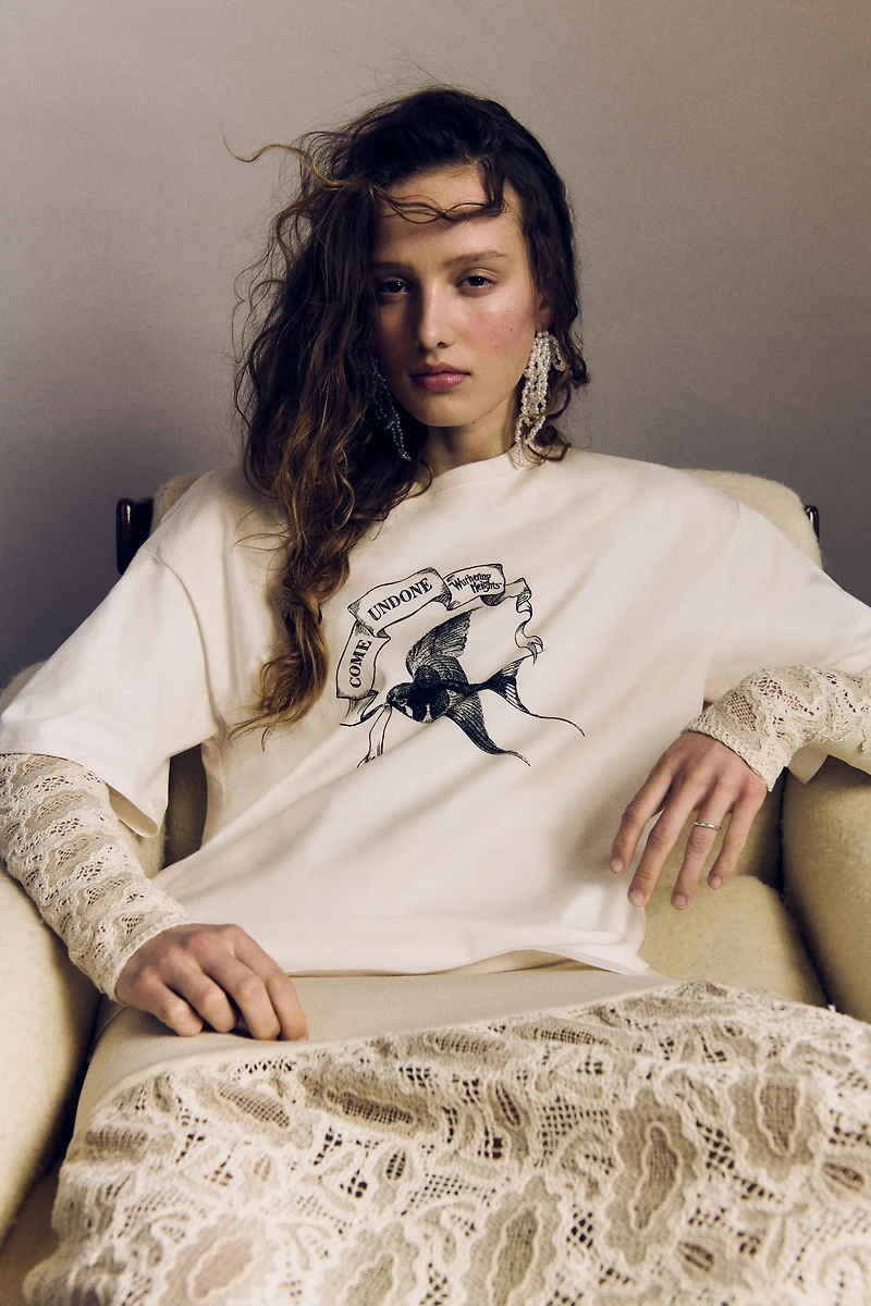 Oversized T-shirt in cotton jersey with a printed design. Ribbed round neck, dropped shoulders, and a straight-cut hem.