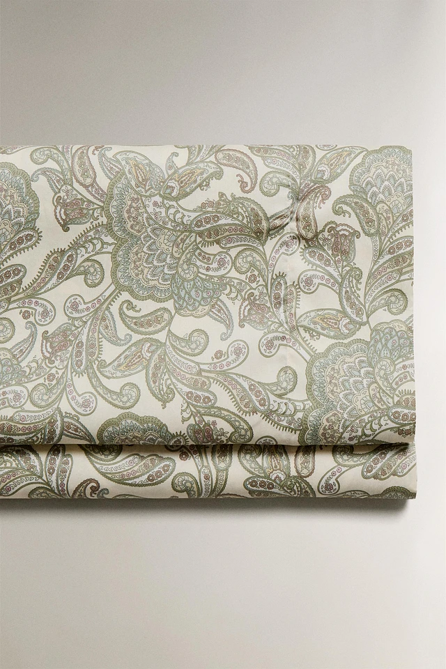 SATEEN FLAT SHEET WITH LEAF PRINT