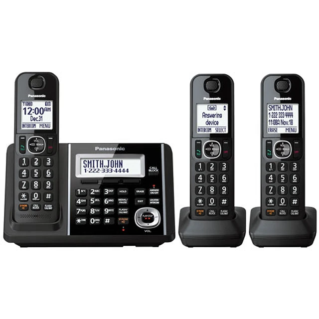 Panasonic 3-Handset DECT 6.0 Cordless Phone with Answering Machine (KXTGF343B)