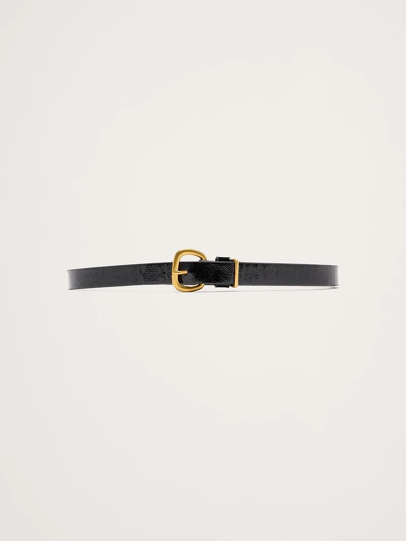 WE added extra length to the tail of this belt so you can knot or fold it for added drama. Cut from a beautifully glossy and textured patent leather quality that's so luxe.
