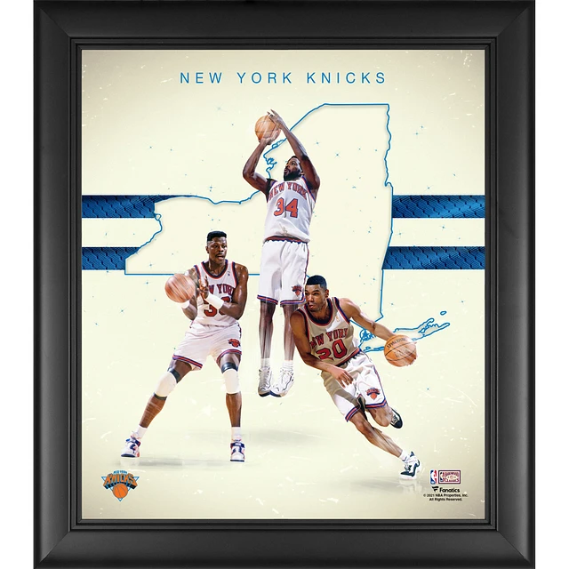Patrick Ewing Charles Oakley & Allan Houston New York Knicks Framed 15" x 17" 1990s Hardwood Classics Franchise Foundations Collage