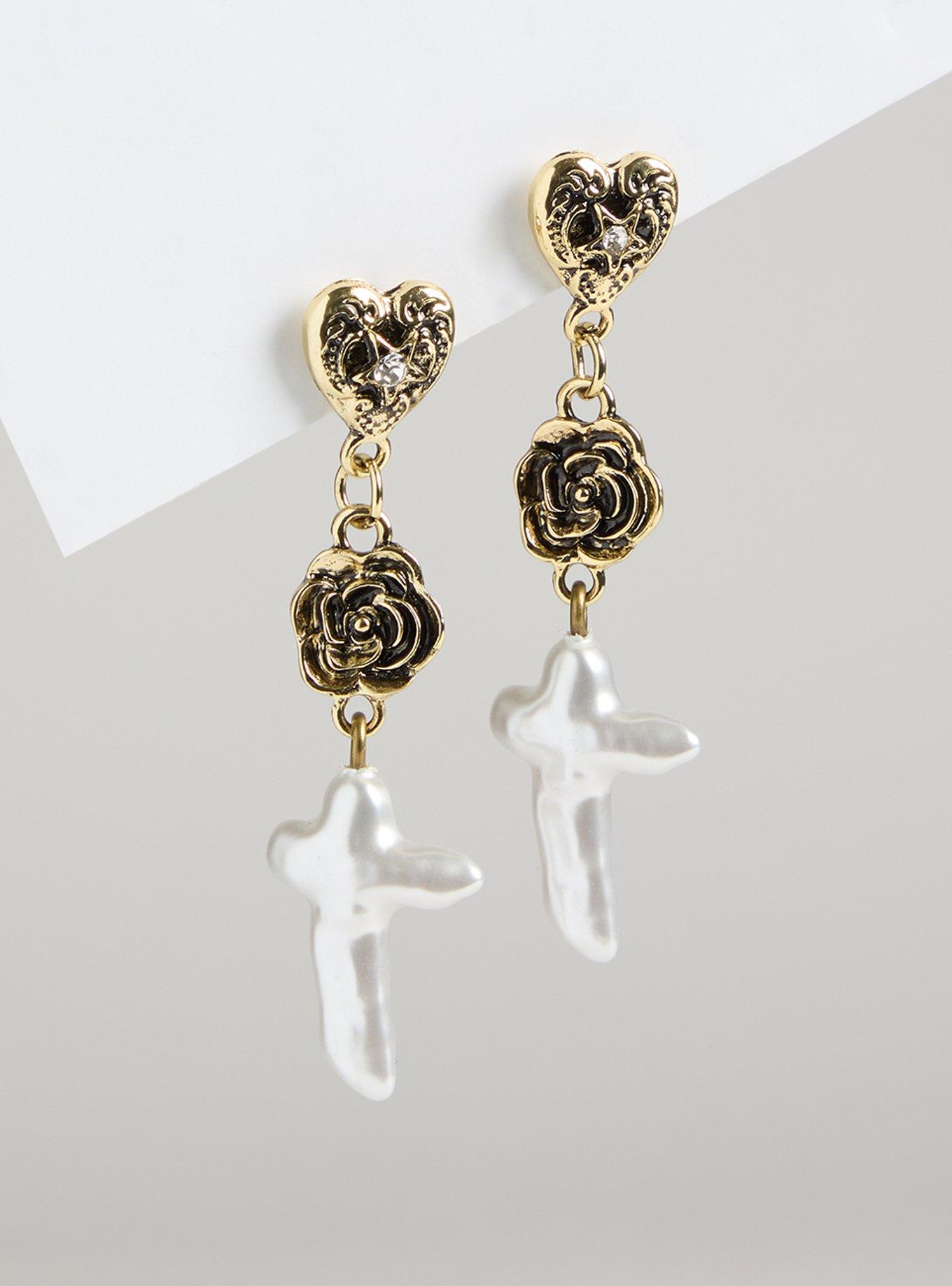 Pearl Cross Earrings