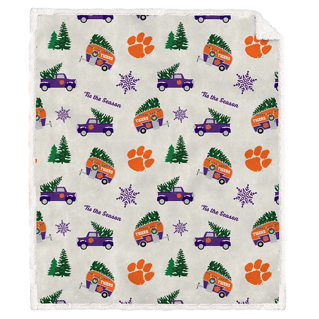Pegasus Clemson Tigers Holiday Truck Repeat 50" x 60" Sherpa Flannel Fleece Blanket