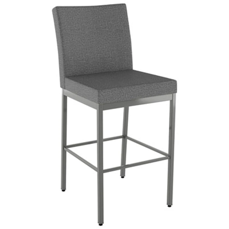 Improve the design of your in-home bar and add extra seating to your home with the Perry Plus traditional barstool. This stool features a strong powder-coated steel base, with playful rounded lines and an upholstery, that provides a classic look that will suit any home. | Perry Plus Traditional Counter Height Barstool - Grey Woven/Metallic Grey