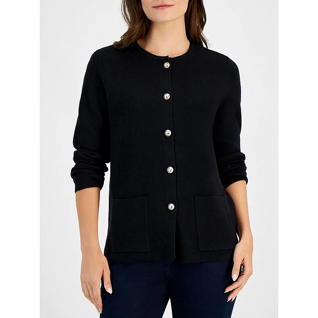 Shirt-Collar Cardigan Sweater with Milano Stitches