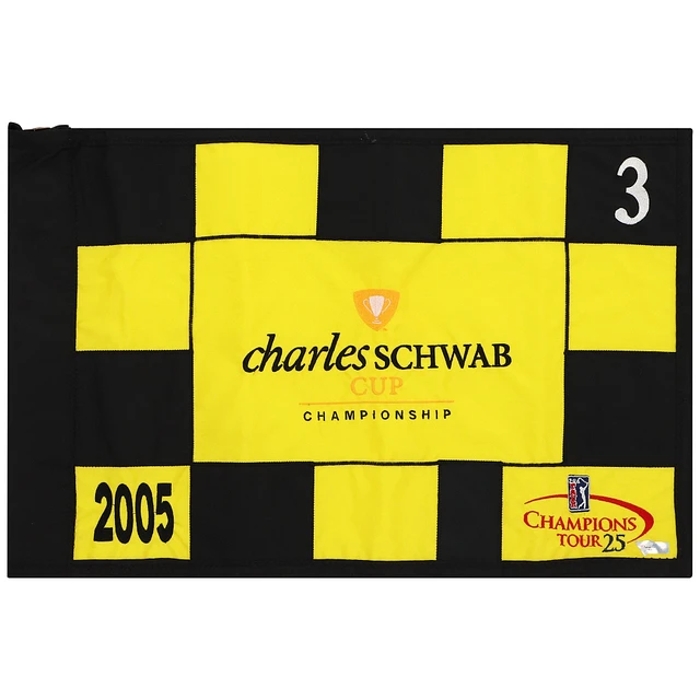PGA TOUR Event-Used #3 Yellow and Black Pin Flag from The Charles Schwab Cup Championship on October 2nd to 30th 2005