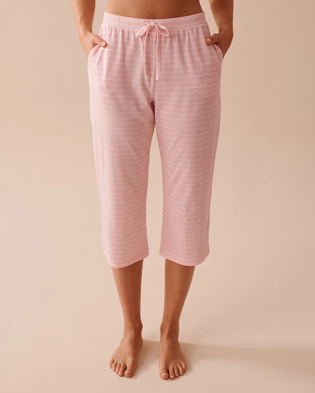 Pink Striped Cotton Pajama Capris