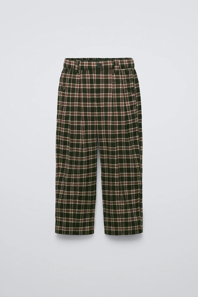 ZW COLLECTION PLAID PLEATED WIDE LEG PANTS
