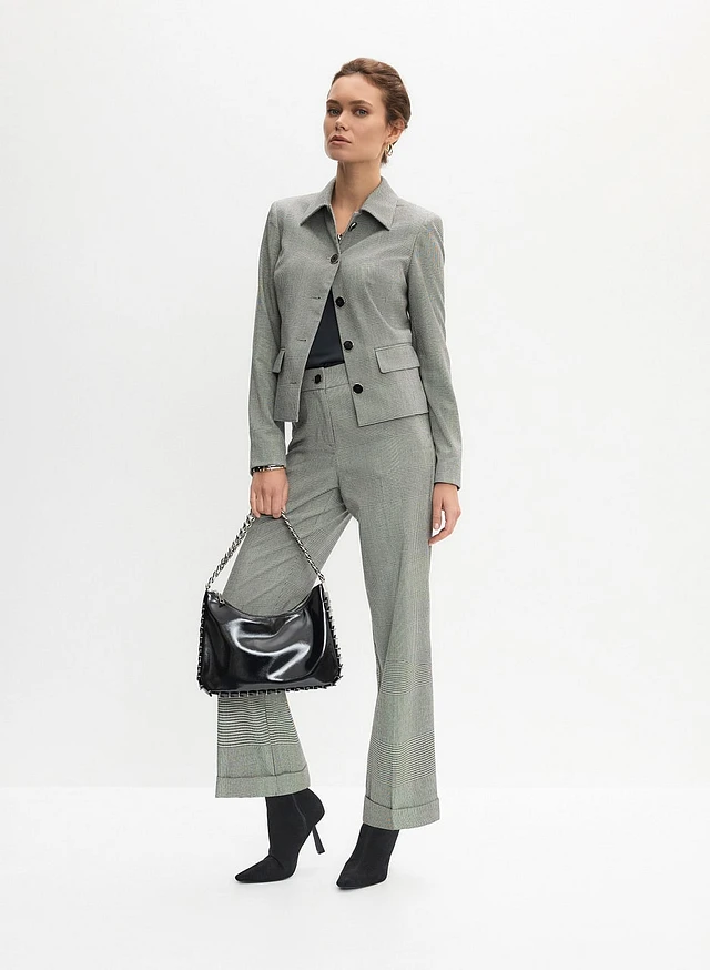 Plaid Print Button-Up Jacket & Plaid Giselle Cut Pants