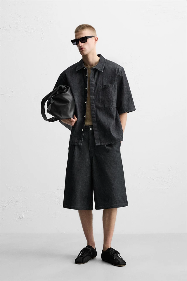 PLEATED WIDE LEG BERMUDA SHORTS