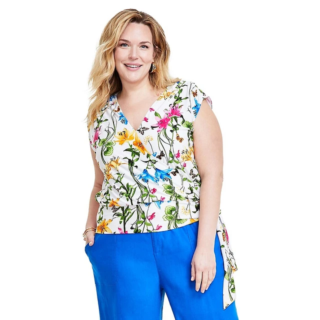 Plus Floral Side-Tie Cap-Sleeve Top