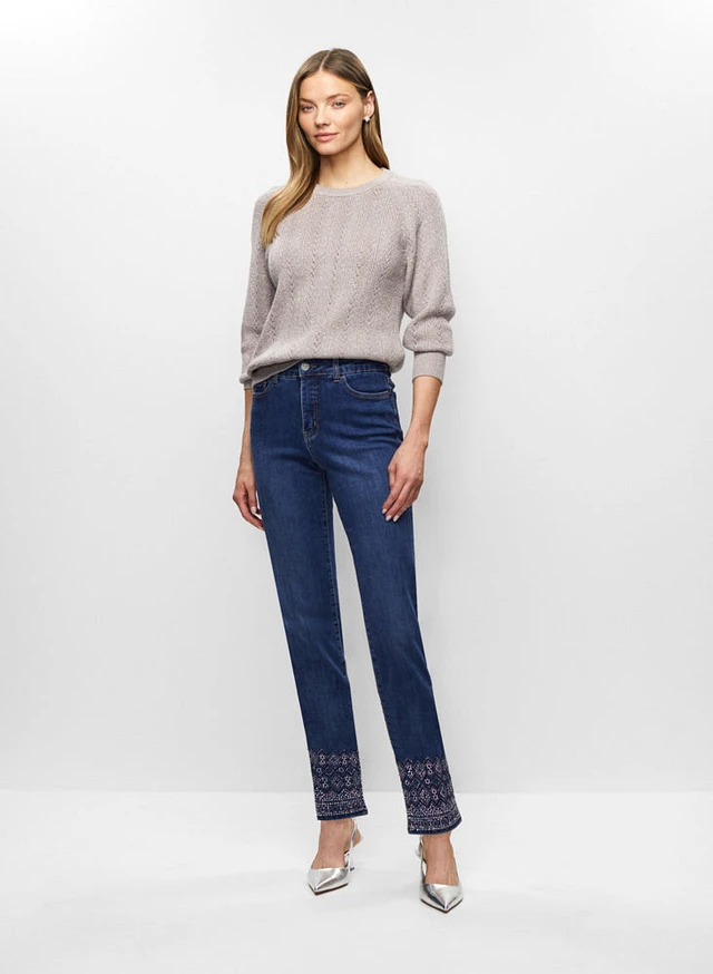 Pointelle Knit Sweater & Embellished Jeans