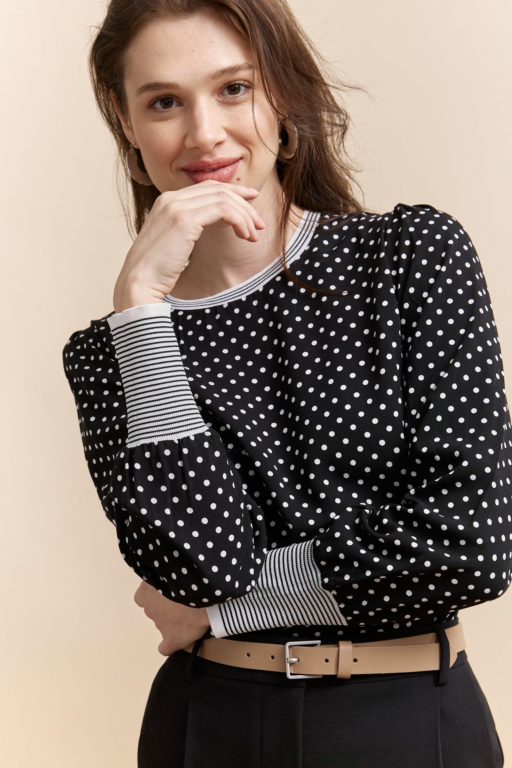 Costa Blanca Polka Dot Long Sleeve Blouse