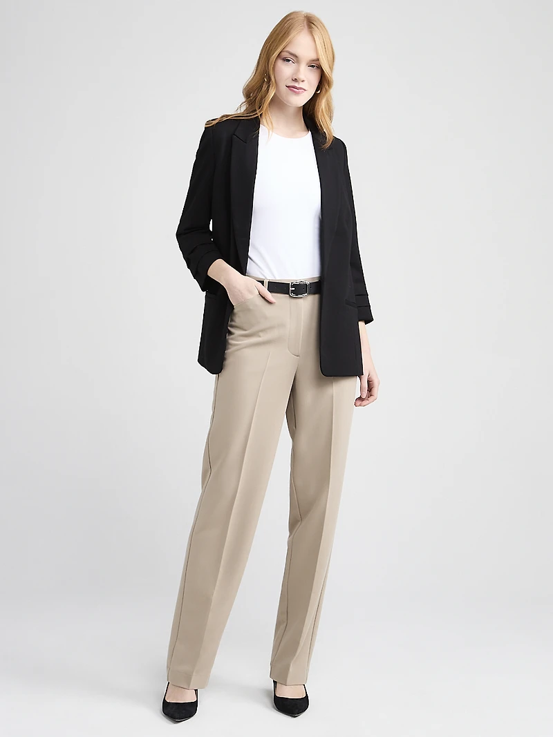 Ponte Ruched-Sleeve Long Line Blazer