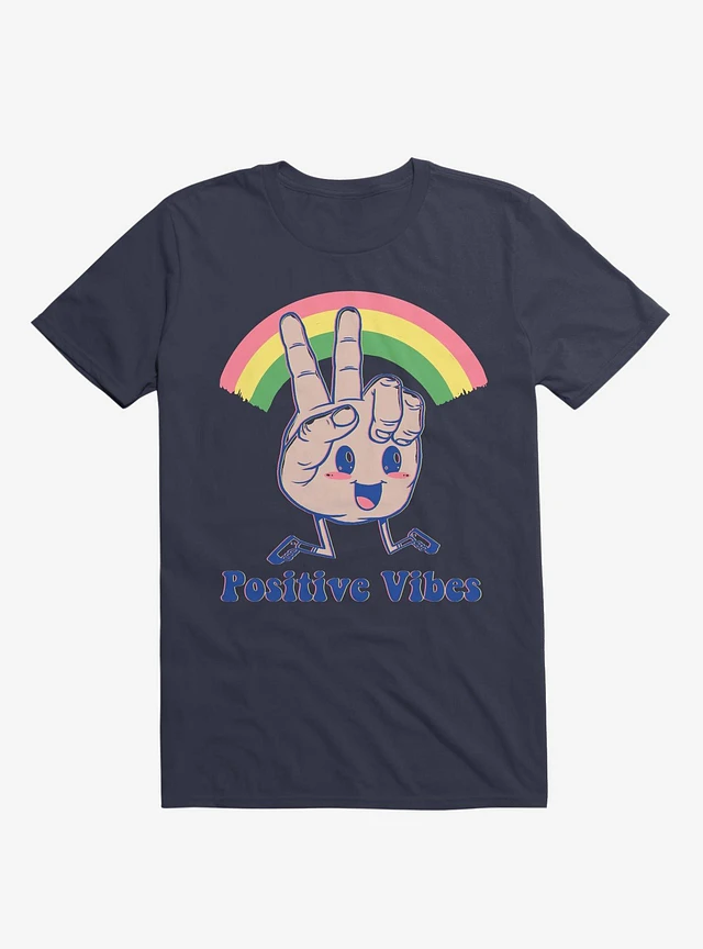 Positive Vibes Rainbow Navy Blue T-Shirt