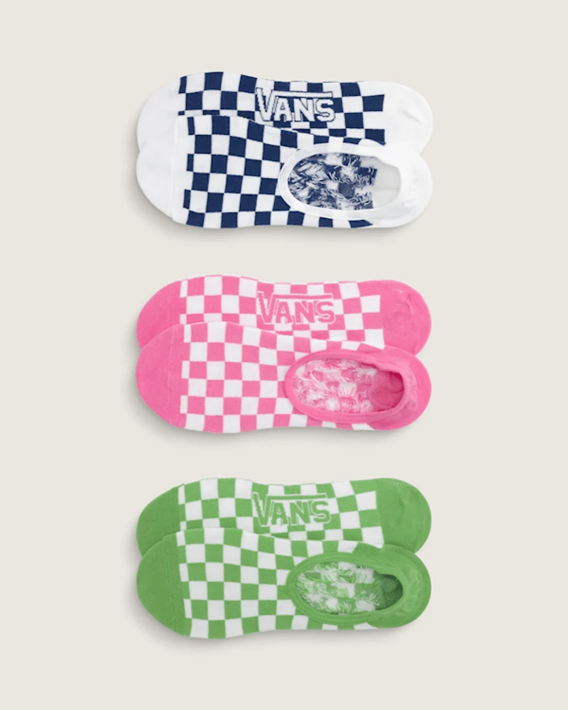 Keep your ankles bare but your style loud. This no show 3-pack pairs soft knit comfort with bold checkerboard jacquard art, so every step feels easy and unapologetically you.